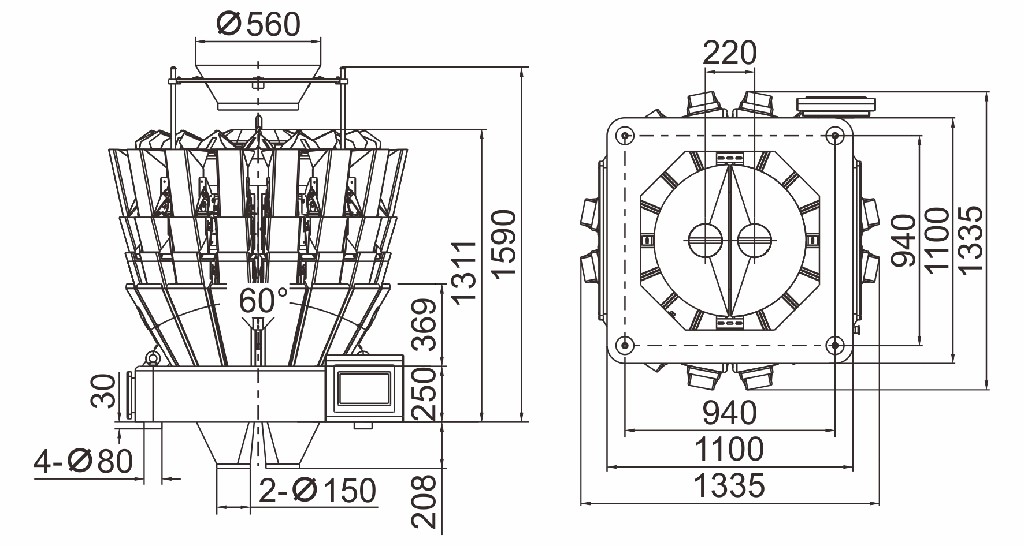 Трехслойный весовой дозатор с 16 головками 4th G подходит для взвешивания различных зернистых, хлопьевидных, круглых и нестандартных материалов, оборудования и т. Д.